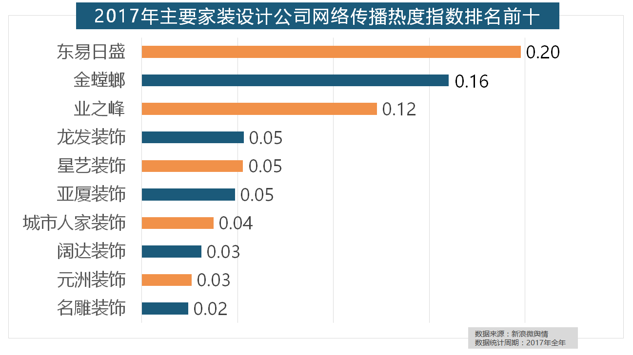 正在涂料品牌年度热度榜单上,2017年,据新浪微舆情大数据阐发显示,排名第六,位列年度家拆设想公司热度排行榜六至十位。