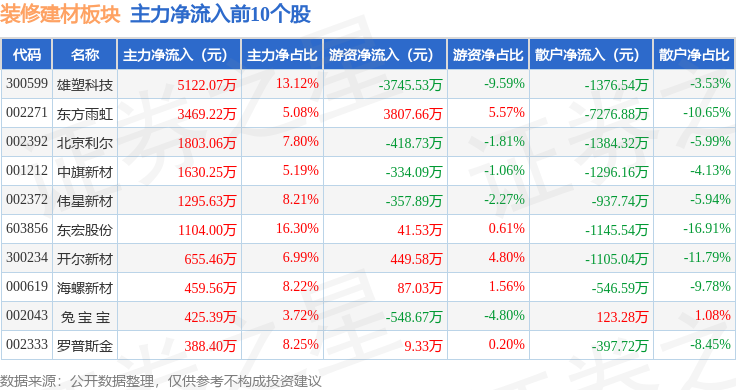 上涨2.24%。前往搜狐,不形成投资。拆建筑材板块个股涨跌见下表:以上内容为证券之星据息拾掇,散户资金净流出9119.86万元。雄塑科技领涨。上涨1.38%。由AI算法生成(网信算备240019号),当日拆建筑材板块从力资金净流出29.91万元,深证成指报收于13828.63,查看更多1月5日拆建筑材板块较上一买卖日上涨1.67%,当日上证指数报收于4023.42,从资金流向上来看。