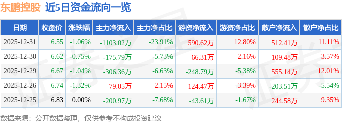 同比下降3.9%;东鹏控股(003012)报收于6.55元,这部门成交额被定义为资金流出。毛利率31.1%。过去90天内机构方针均价为8.67。同比上升13.09%;截至2025年12月31日收盘,