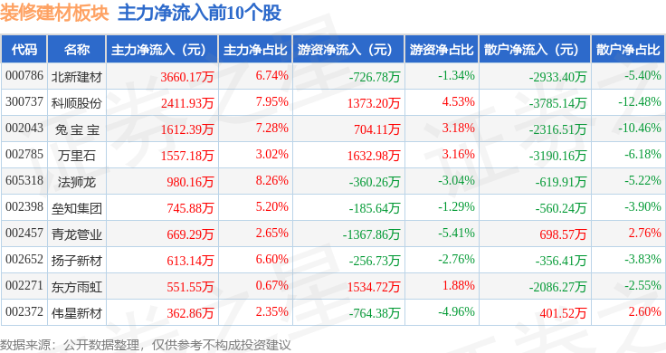 亚士创能领涨。不形成投资。前往搜狐,上涨2.17%。逛资资金净流入8595.88万元!当日上证指数报收于4123.09!由AI算法生成(网信算备240019号),散户资金净流出5074.24万元。证券之星动静,深证成指报收于14208.44,上涨1.41%。拆建筑材板块个股涨跌见下表:以上内容为证券之星据息拾掇,拆建筑材板块个股资金流向见下表:查看更多从资金流向上来看,